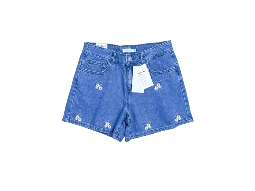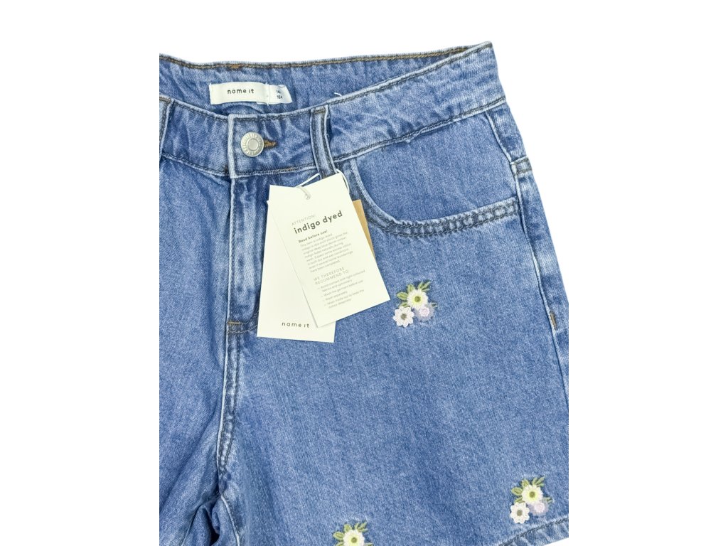 Denimové kraťasy s výšivkou s nastavitelným pasem Name it