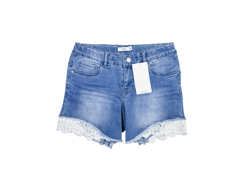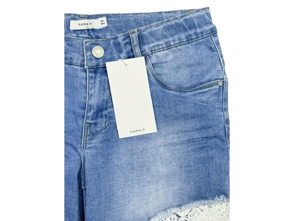 Denimové pružné kraťasy s krajkou s nastavitelným pasem Name it