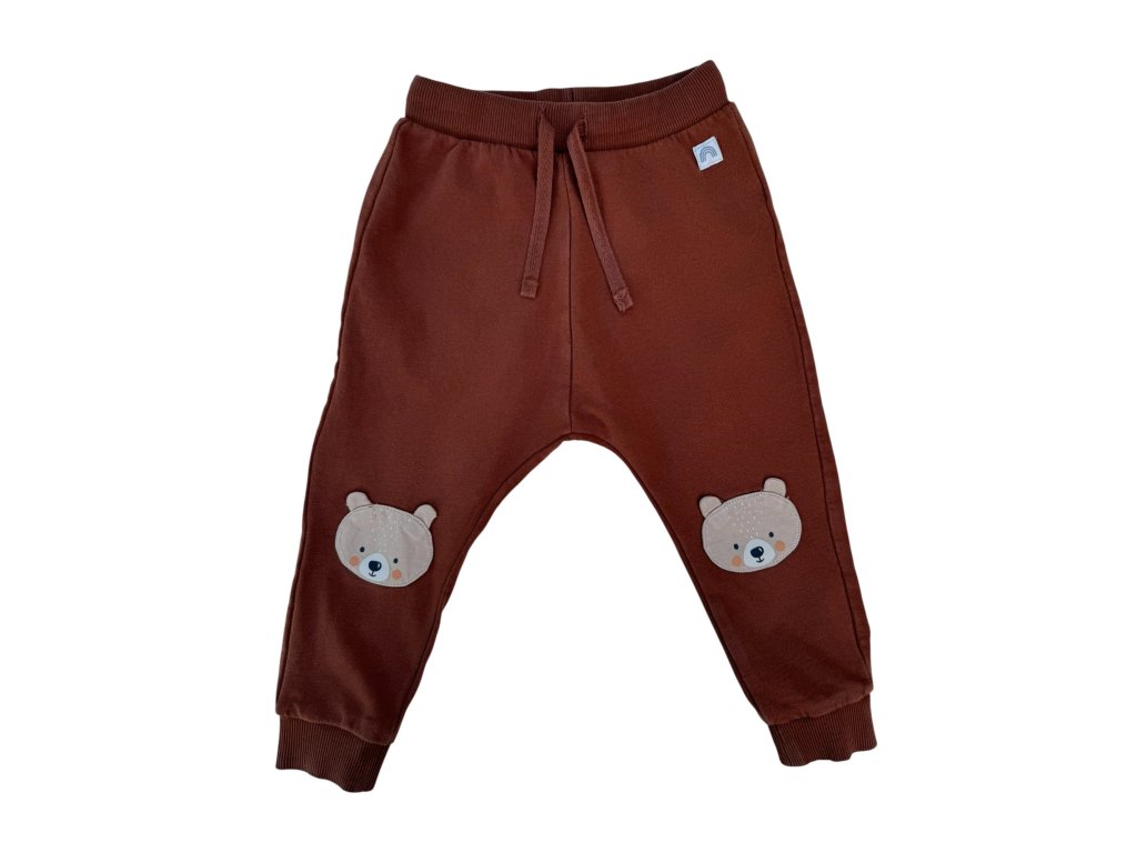 Hnědé tepláky s medvídky na kolenou Lindex