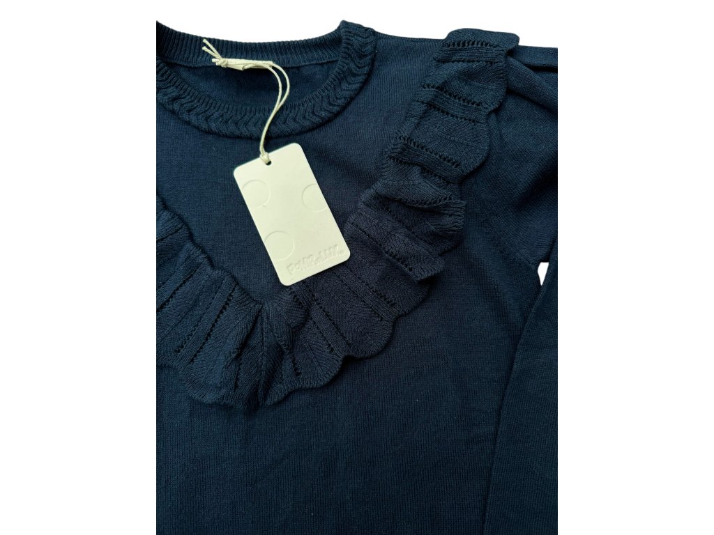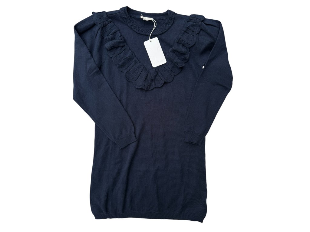 Modré pletené šaty s kašmírem s volánem POMPdeLUX