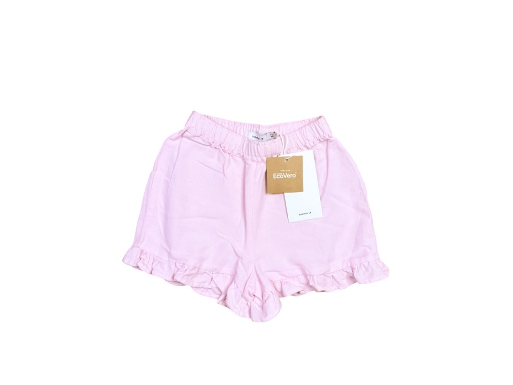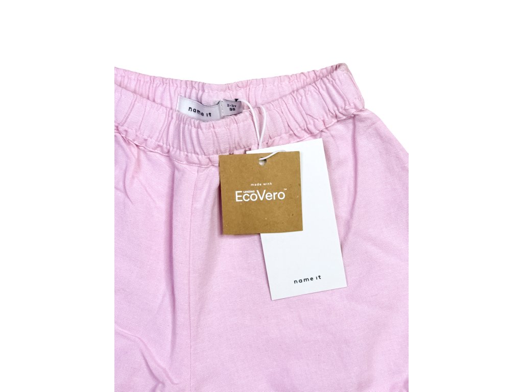 Růžové kraťasy s volánkem z viskózy a lnu s nastavitelným pasem Name it